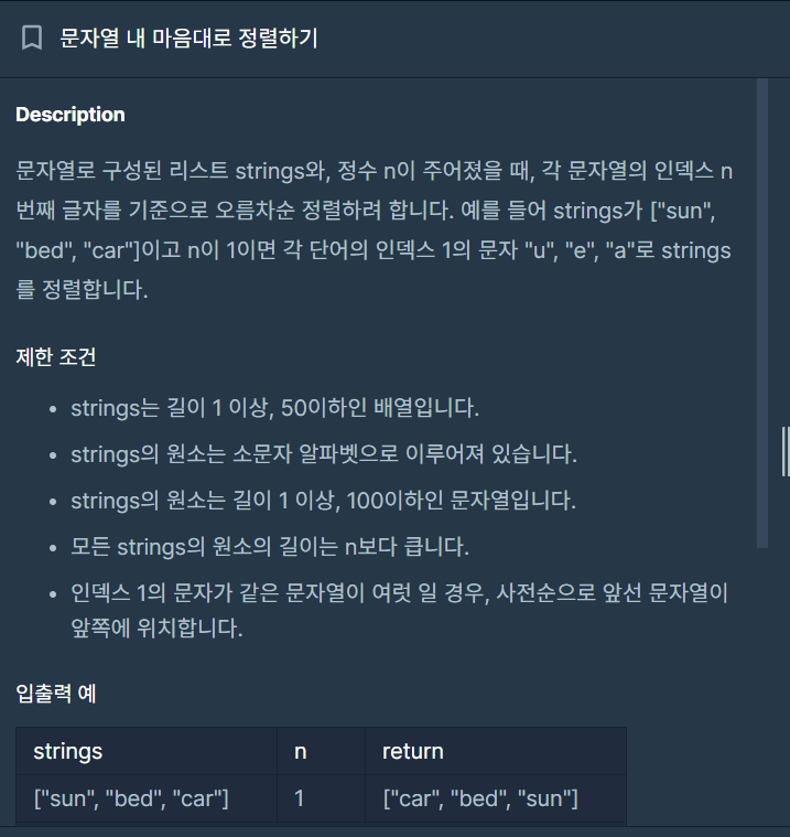 ์ด ์ฝ๋๋ ์ฌ์ ์์ผ๋ก ์ ๋ ฌํ ํ์ ๋ค์ n๋ฒ์งธ ์ธ๋ฑ์ค์ ์ํ๋ฒณ ์์ผ๋ก ์ ๋ ฌํ ์ฝ๋๋ค