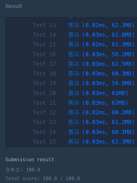 | [ํ๋ก๊ทธ๋๋จธ์ค โข ์ฝํ๋ฆฐ] ๋ชจ์๊ณ ์ฌ ์์ ํ์ #42840 (0) | 2023.12.27 |